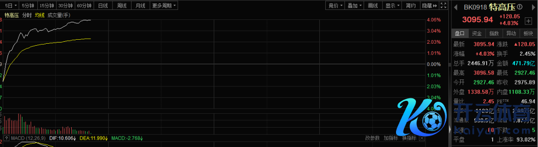 早盘,特高压板块集体狂飙。板块指数由跌转涨,早盘一度大涨4%,涨停或涨幅超10%的个股数目一度达12只。