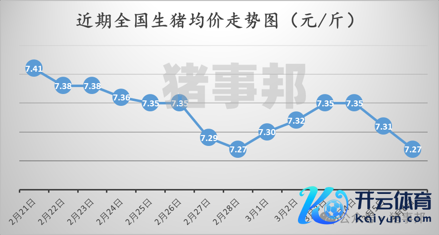 据猪事邦平台汇总的数据,3月6日天下生猪均价为7.27元/斤,较昨日着落0.55%,同比高涨1.54%(客岁同时天下生猪均价7.16元/斤)。